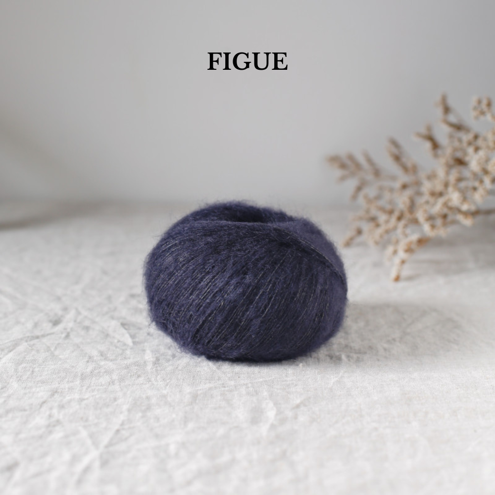 Composition : 55% Super Kid Mohair labeled RMS (South Africa) 25% mulberry silk (China) 20% organic Arles merino (France) |